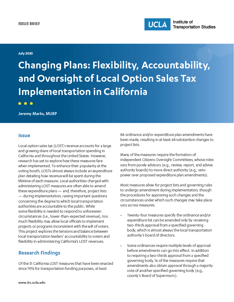 Changing Plans Flexibility Accountability And Oversight Of Local Option Sales Tax Measure Implementation In California Ucla Institute Of Transportation Studies